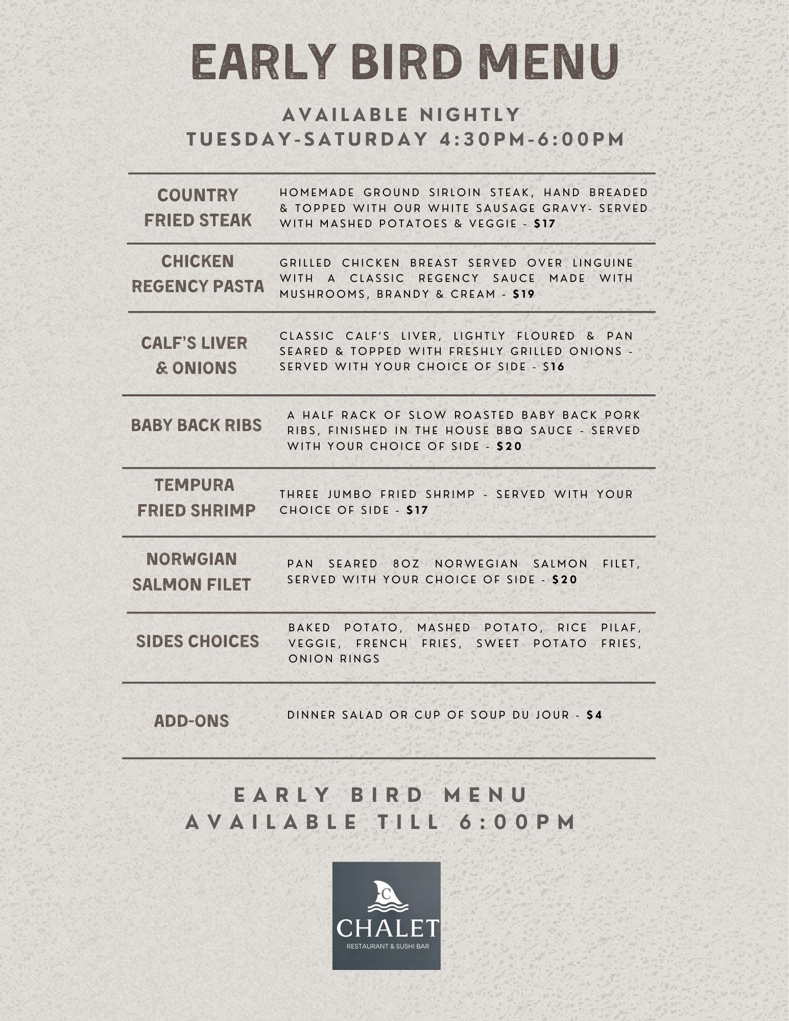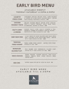 Early Bird Menu